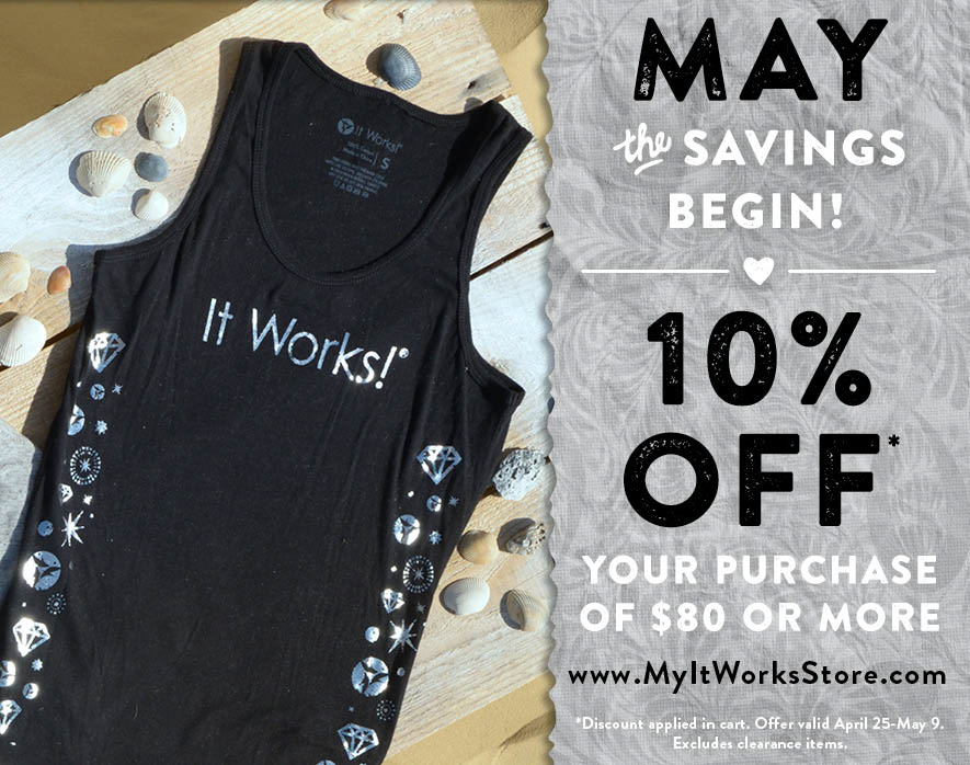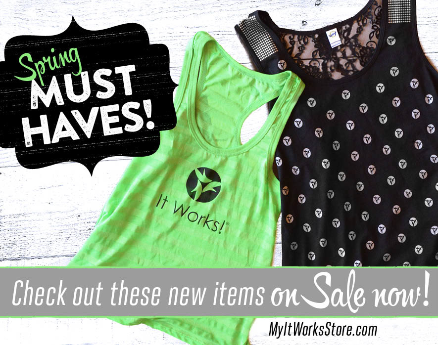 A series of web banners and social media graphics promoting specialty branded apparel for It Works distributord